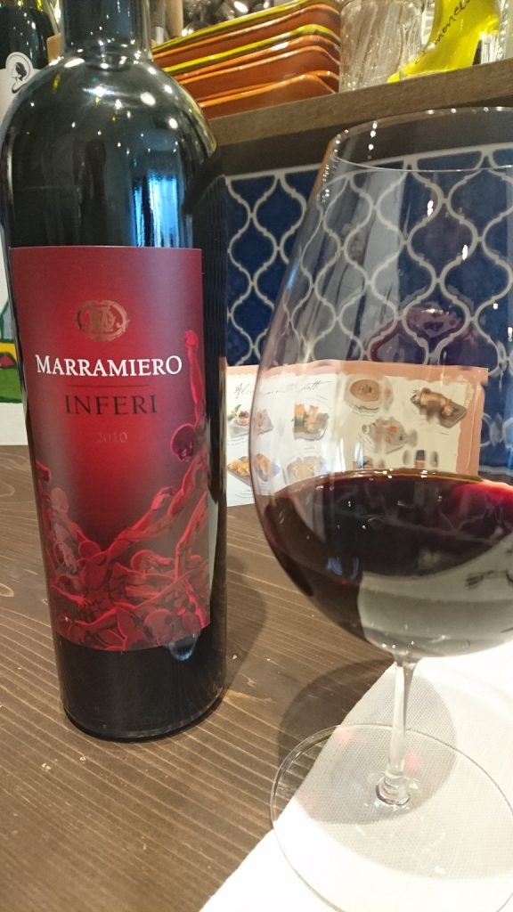 赤を合わせれば無難だが、白も意外と合う。イタリアのヴェルデッキオや辛口の白。リースリングなども合う。赤であればボルドーでも、イタリアのバルベーラやトスカーナのサンジョベーゼも。