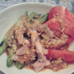 2019年5月7日 / 最終更新日時 : 2020年5月26日 wpmaster 韓国・エスニック 叙〇苑風サラダ ドレッシング(めんつゆ大さじ1、ごま油小さじ2、砂糖小さじ2、酢大さじ1、いりごま適宜) サラダ菜、きゅうり(皮をスライサーで落としてから斜め薄切り)、若布を上記ドレッシングで和える。