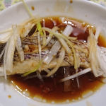 2019年8月19日 / 最終更新日時 : 2019年9月29日 wpmaster 中華 真鯛のガルーパ風蒸し 【材料】(2人前) 真鯛 切り身2切れ、ネギ15㎝、ネギの青い部分適宜、サラダ油、紹興酒大さじ1、蒸し魚用しょうゆ 1.真鯛の切り身は血合いをよく洗い、ペーパーで拭く。皮に十字の切れ目を入れる。 2.ネギは青い部分、芯の […]