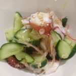 2019年11月23日 / 最終更新日時 : 2019年11月23日 wpmaster 和食 蛸と茗荷ときゅうりのレモン和え 【材料】(2-3人分) 蛸の足2本、きゅうり1/2本、茗荷1つ、白いりごま少々、レモン汁 小さじ2杯分、ごま油小さじ1、塩ひとつまみ ①きゅうりは2㎜の厚みに斜め薄切りにして半分に切り、塩もみする。 ②蛸も2-3㎜に薄切 […]