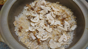 ②しめじも湯にさっと通し、水にとって冷まして、ぎゅっと絞っておく。