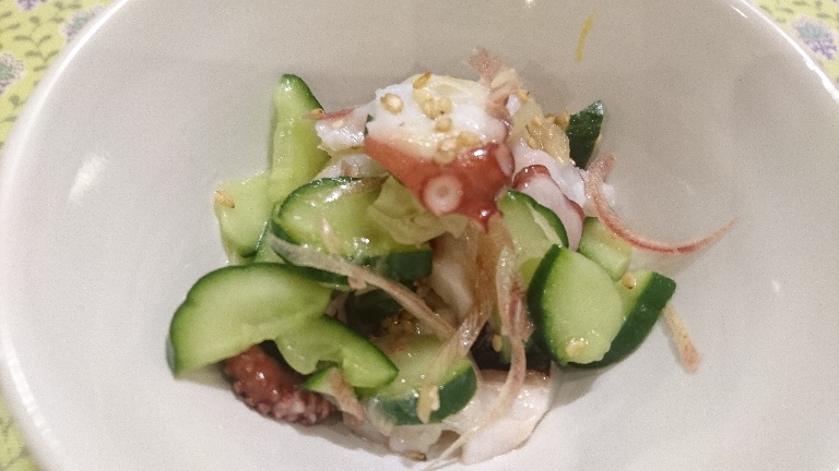 2019年11月23日 / 最終更新日時 : 2019年11月23日 wpmaster 和食 蛸と茗荷ときゅうりのレモン和え 【材料】(2-3人分) 蛸の足2本、きゅうり1/2本、茗荷1つ、白いりごま少々、レモン汁 小さじ2杯分、ごま油小さじ1、塩ひとつまみ ①きゅうりは2㎜の厚みに斜め薄切りにして半分に切り、塩もみする。 ②蛸も2-3㎜に薄切り、茗荷も斜め薄切りにする。 ③ボウルに①と②を入れ、レモン汁小さじ2とごま油小さじ1を入れ、塩を好みで少々を入れて味を調える。仕上げに白いりごまを振る。 \ 最新情報をチェック / FacebookXBlueskyHatenaCopy コメントを残す コメントをキャンセルメールアドレスが公開されることはありません。 ※ が付いている欄は必須項目ですコメント ※ 名前 ※ メール ※ サイト 上に表示された文字を入力してください。 Δ