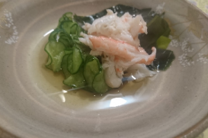 ②塩昆布、レモン汁、ごま油を入れて和える。