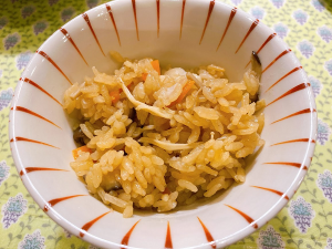 ④ボウルに1人分目安の①と③を入れて大き目のスプーンで160℃の油に入れる。上に足しながら好みの大きさにして揚げる。