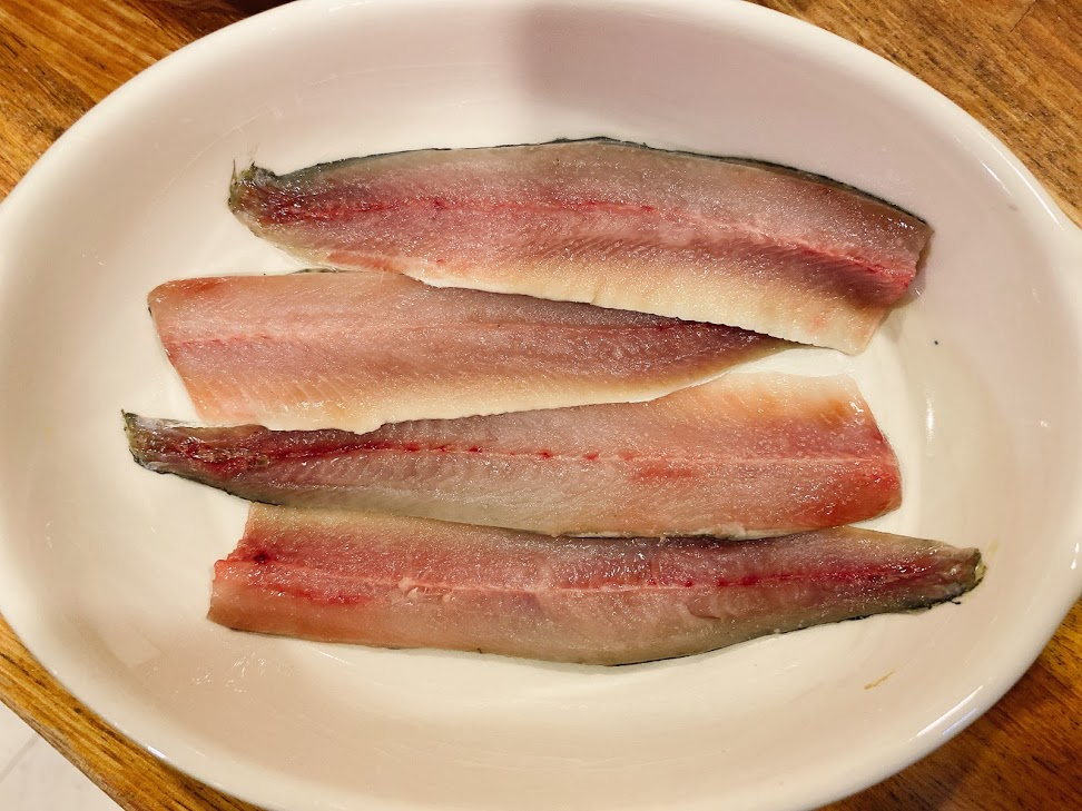 ①いわしは3枚おろしにして水で洗い、キッチンペーパーで拭く。調理する10分前に塩を振り、10分おいたらキッチンペーパーで水分をふき取る。