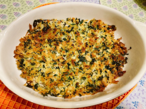 ①すり鉢で胡麻を摺る。胡麻の粒がほとんどなくなるまで100回くらい丁寧に摺ります。これが香ばしさのポイントなので、ゆっくりと摺ります。