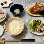 2020年11月23日 / 最終更新日時 : 2021年1月24日 wpmaster 毎日の献立集 2020年11月21日(きんきの煮つけと冷しゃぶ、烏賊と小松菜炒め) きんきが安く売っていたので、煮つけに。前日のしゃぶしゃぶの残りのお肉で冷しゃぶ、烏賊は冷凍してあったものを活用して小松菜とにんにく炒め。烏賊の刺身、蛸の余りは多めの油で揚げるように焼きました。 きんきはちょっと脂乗りすぎ […]