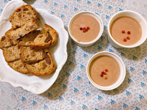 ①2種類のつけだれを作る。ひとつめは溶き卵2個分にニンニクのすりおろしを小さじ2、豆板醤小さじ2(4人分)、二つ目はポン酢にネギのみじん切りを適宜入れる。