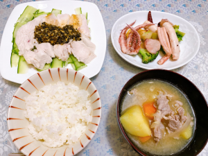 2021年7月18日 鯛茶漬けと鶏ささみ春菊の和え物