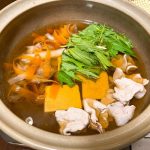 2022年1月23日 / 最終更新日時 : 2022年3月11日 wpmaster 鍋のヒント 2022年1月22日 豚肉と大根、人参のしゃぶしゃぶ鍋 【材料】(2人分) 水菜100g、豚バラしゃぶしゃぶ用100g、油揚げ50g、大根100g、人参30g、出汁400㏄、薄口しょうゆ大さじ1 ①大根と人参はスライサーで薄く剥き、2分ほど下茹でしてざるにあげておく。 ②その […]