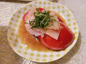その他、レンコンととろけるチーズのカリカリ焼き、手羽先の焼き鳥風、茗荷梅です。茗荷も旬な季節です。ついつい余りがちですが、斜めに刻んではちみつと梅干のたたき、お酢、アマニオイルで合えるとさっぱりとした副菜になります。