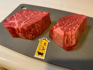 比較的リーズナブルでサシが入ったランプを見つけたので半分に切って焼きます。