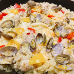 ⑥あとは中火で15分ほど加熱します。味見をしてアルデンテに仕上がっていたら出来上がり。米が硬すぎるようであれば様子を見ながら蓋をしてさらに加熱します。