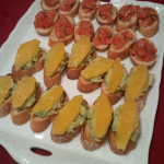 2019年9月29日 / 最終更新日時 : 2019年11月18日 wpmaster イタリアン アボガドと蟹肉のクロスティーニ パーティーを華やかに演出します。 【材料】 アボガド1個、玉ねぎ30g、蟹のほぐし身50g、オレンジ1個、レモン汁1/4個分、白ワインビネガー少々、マヨネーズ大さじ1、バゲット(5㎜幅x12) ①アボガドを粗みじんにして […]